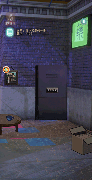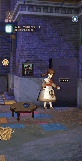 4、待小女孩行动自由后,在右侧能发现一个箱子,打开箱子可获取一把钥匙,接着用这把钥匙打开左边的书柜。