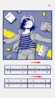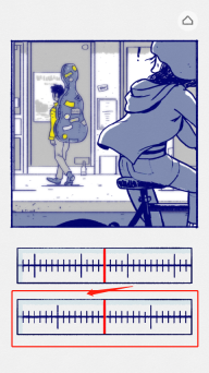 2、故事开篇,小女孩察觉到后方有车驶来,此时画面颇为模糊。我们需将上方的刻度往右滑动,直至呈现出肉眼所见最为清晰的状态,通常是刻度最长的那根线处,或者是中间的那根线位置。接着,把下方的刻度尺往左滑动,待整个画面变得高清后,便会进入下一个画面。