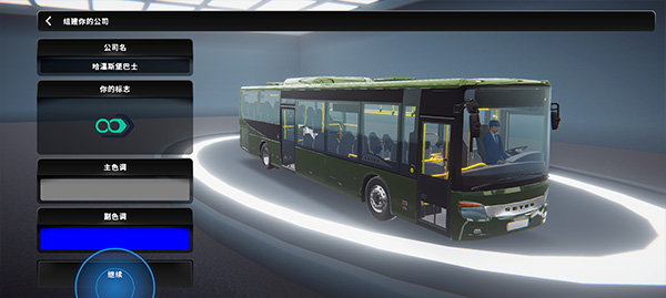 3、我们得组建一家公司,挑选公司名称、公司标志、车辆颜色等,挑选完毕后点击继续。