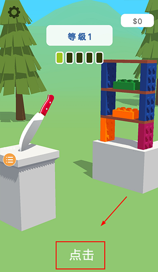 1、打开切开一切游戏,【点击】屏幕,即可开始控制小刀;