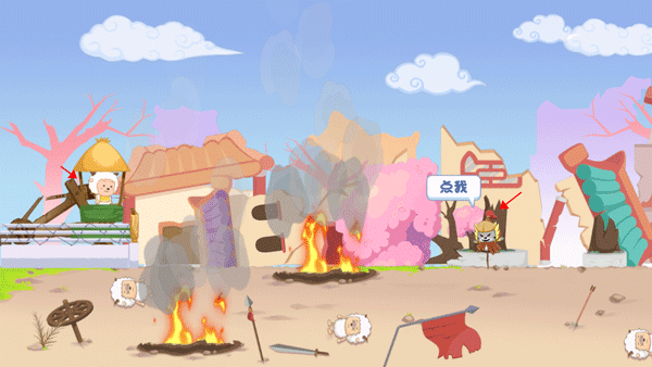 2、游戏的玩法就是点击敌人,让懒羊羊用弓箭定位到敌人身上,这样就能够打倒敌人。