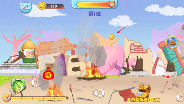 2、在喜羊羊与灰太狼之羊村保卫战游戏中的抽奖、挑战、奖励等环节都可以轻松获取一定的金币。