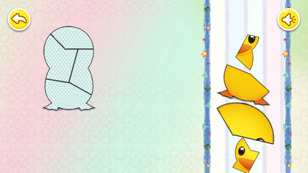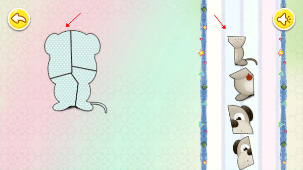 4、点击右侧按钮,便会出现一个全新的小动物轮廓,依照上一关的通关方式,继续拼出完整的动物图片,即可通过下一关。
