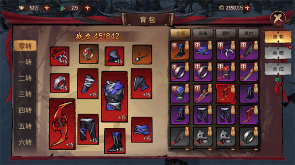 每次转职都会增加一页装备栏,可以装备对应转职等级的装备。
