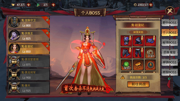 (2)剧情副本:除主线任务外,特别增添了三个全新的剧情副本。角色达到150级、300级、500级时即可开启。此次,莫心为大家带来了更深入的线索。在这里,你不但能够揭开幽狐侯、赤炼侯、赵皇妃等人的身世谜团,还会挖掘出苍龙劫背后隐藏的深层秘密。此外,副本中还出现了新的敌人,他们别具一格的战斗方式,会给你带来不小的挑战,快来将他们击败吧。