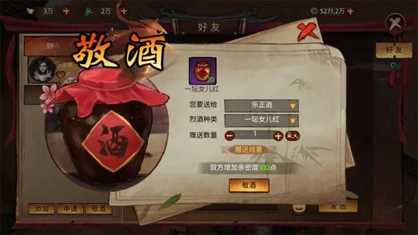 我们可以在好友系统中,通过敬酒完成。