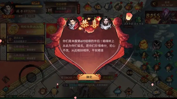 3、两人都到达180级,开启结婚系统后,一人发出邀请,另一人前往皇城结缘仙子处(101,34,147)接受邀请。