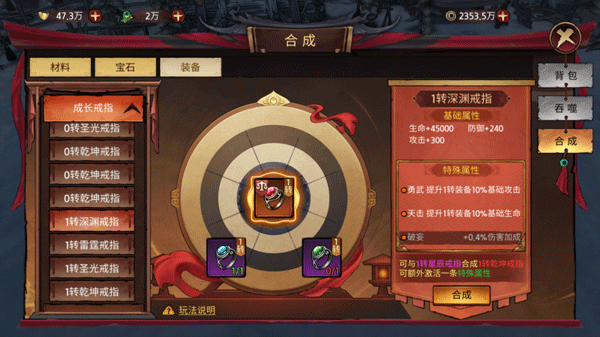 还可以合成更高品质的装备,额外增加一条属性。