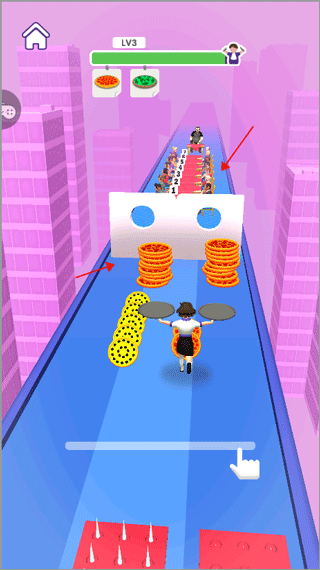 2、你得调整自身行动路线,在避开障碍物的同时,尽量多搜集顾客所需的披萨。
