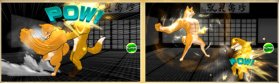 可选角色共有6个,分别是肌肉鲸、走路猫、勾拳柴犬、大力狐、魔法松鼠和猩猩乌鸦,选择完角色后可以选择两种配色与战斗模式。标准模式下没有连招辅助,所有的连段都必须自己打出。