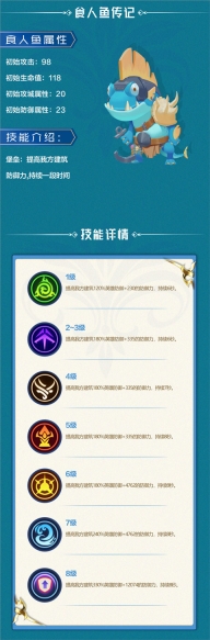 食人鱼作为一个蓝卡同狮子一样是我们的新人伙伴,食人鱼主要通过增加防御塔防御来抵制敌人。