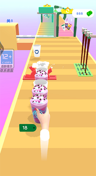 2、边制作奶茶边闯关,体验完整的跑酷体验。