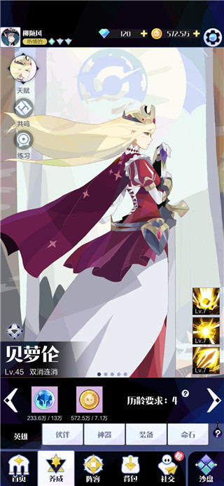 新手统一建议无脑选择贝萝伦,能升几级升几级,其它的英雄都太过于花里胡哨了,不好操控。