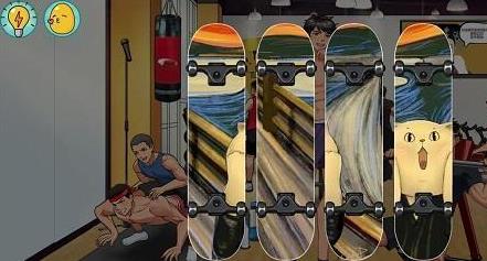 1、把右侧滑板拖到正在玩电脑的男生身上,男生随即变身为“潘周聃”,而后踩着滑板离开现场。