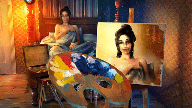 5、在玩家找到所有颜料和画笔之后,把它们全部放在这个颜料板上即可触发剧情;