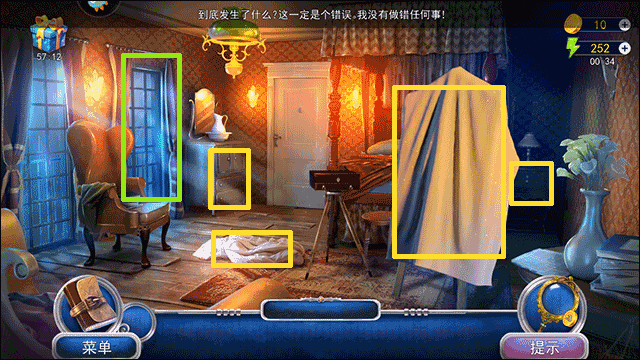 7、通过与场景展开互动,寻找到床单、钥匙、项链、五角星等道具,随后与绿色方框所划定的区域进行互动,如此便能成功逃离。