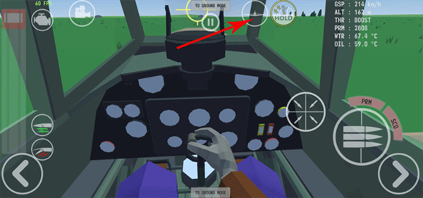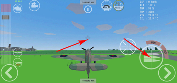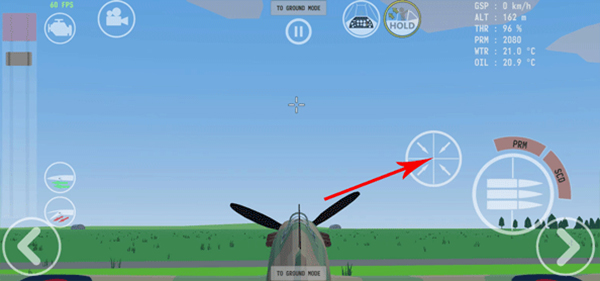 2、滑动屏幕可以控制飞机的视角,点击右方的子弹图标进行攻击;
