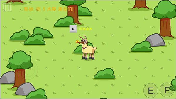 第一个水果朋友在这个石头这,我们需要找到蜂窝来让他出来。
