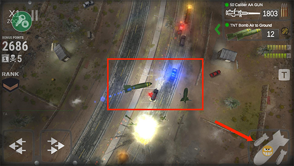 6、如图,将方向移动到准星中,我们点击右下角【核弹】图标,就可以开始投放核弹轰炸了,