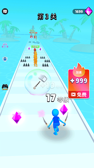 3、充满刺激与趣味的跑酷玩法,玩家需操控角色在这极具挑战性的赛道上持续向前跑酷。