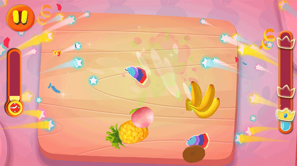 3、切换至彩色葫芦时,水果会从左右两侧爆发而出,具体效果如图所示。