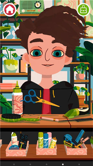 如果头发不小心剪少了一块,玩家无需担心。只需直接点击红色瓶子,那是生发剂,使用它就能帮助恢复头发。