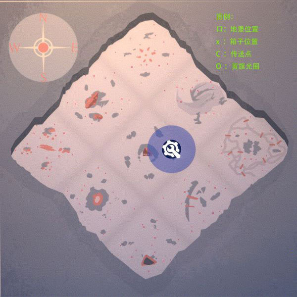 在这张图中,SE方向不存在刷箱点。因此,若想刷光场上全部箱子,建议从S方向的悲伤沼泽或者E方向的诺曼底峡谷着手开始刷。可以从家附近的传送门出发,如此能够节省些许跑路时间。