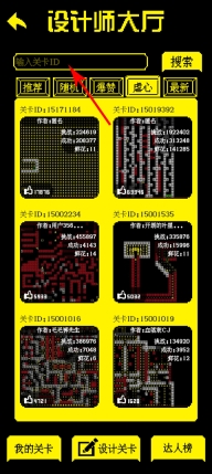 2. 进入设计师大厅后,可通过搜索ID,或在下方挑选热门关卡来展开挑战。