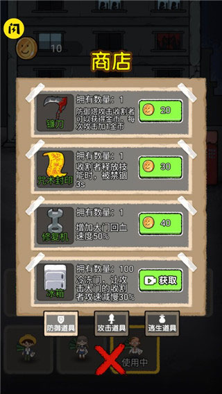 6、找个没人的房子开始躺着发育,获得金钱来升级门和武器;