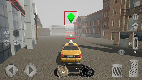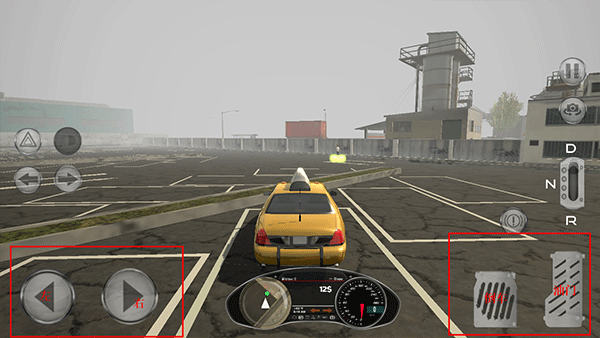 2、进入开放世界出租车模拟器这款手机游戏后,通过左边的左右按键来操控车辆行驶方向,右边则分别是倒车键和油门键。