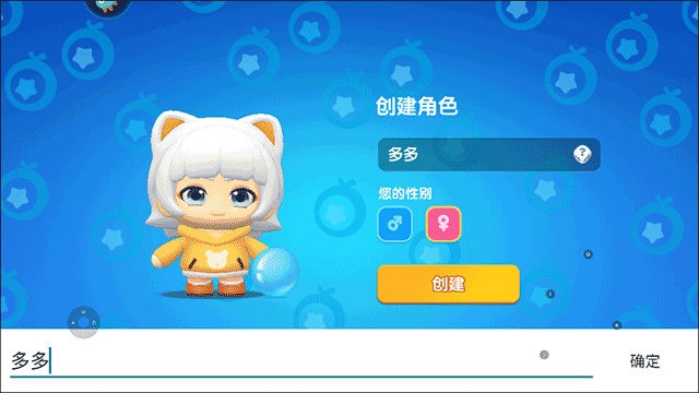 2、在里输入你的角色昵称,选好性别,选择并点击“创建”的选项;