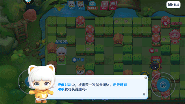 2、同时还有可以丢泡泡的小手套,还有各种不同的武器还有坐骑,从而来帮助玩家不断的取胜;