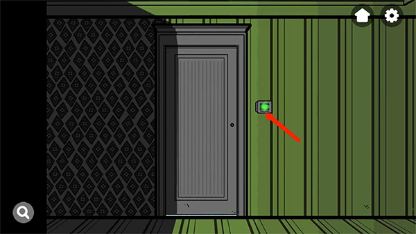 2、进入游戏界面是一个房间门口,点击【密码锁】图标,