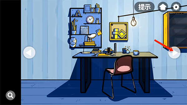 5、来到主角的房间,点击左右两侧的【箭头号】能够切换房间场景,先点击右边的箭头。