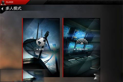 在线”模式可以和世界各地的Gameloft玩家战斗。“本地WLAN”则是可以通过WLAN,与朋友在本地局域网战斗。玩过CS或者DOTA等竞技游戏的同学应该已经很熟悉这些模式。
