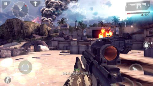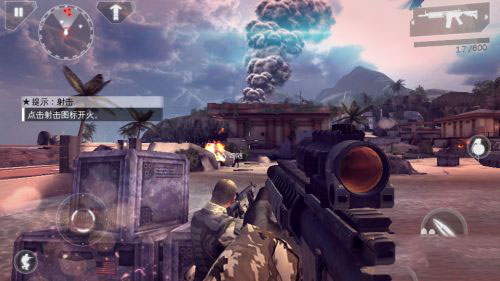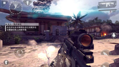 游戏拥有非常独特的开场动画,操作方式和前作差不多相同,使用了虚拟摇杆加按键的形式进行操作,同时玩家还可以启动陀螺仪进行辅助瞄准,在瞄准系统下,玩家的准心会自动锁定住较近的敌人,来降低玩家瞄准的难度,这个设定对于使用掌上设备玩FPS游戏的玩家来说是十分必要的。