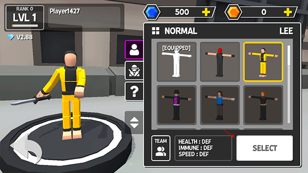 4、你能够对各类角色皮肤进行编辑,部分皮肤需解锁后才可使用,点击“select”即可启用。