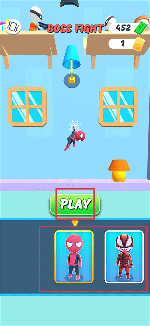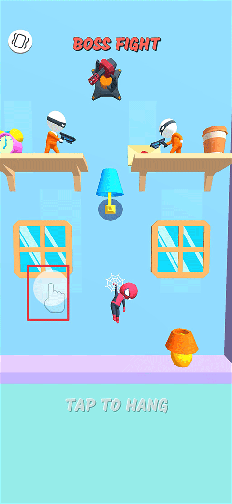 2、进入游戏后,通过点击屏幕来发射蜘蛛网黏住墙壁来移动角色