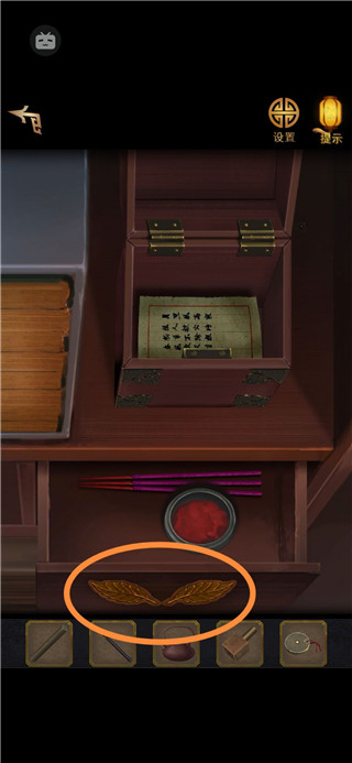 16、架子三层右边箱子,把铜饼安上。外面桌子上有关于圈圈的提示:外日内月。结合案发日期,丁巳日,戊申月。获得佛头。