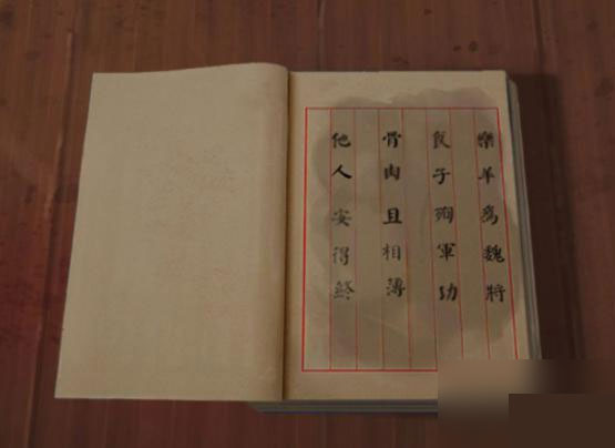 4、拿到军字,装回床榻上的小盒子,对照书本上的字符位置调整可以获得得到牢房钥匙,进牢房。