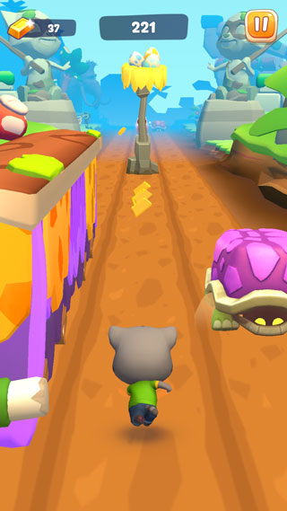 2、玩家扮演一只汤姆猫,你还会有很多的伙伴跟你一起跑酷,会说话的狗狗本,汉克金杰等有趣的动物们;