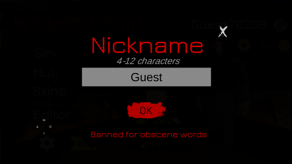 2、进入绰号编辑页面后,在“Guest”输入框中输入心仪的绰号,接着点击“ok”。需注意,“Banned for obscene words”,即禁止使用淫秽语言。如此,你的名字就修改完成啦!