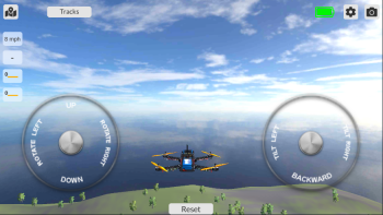 3、操作极为简便,左侧用于控制无人机的飞行高度与行驶方向,右侧负责控制飞机的左右侧翻,点击右上角的相机图标,就能查看周边状况。