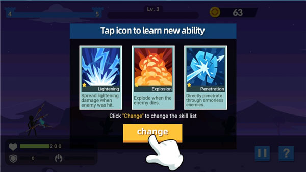 此外,火柴人神射手游戏为玩家提供了丰富多样的武器。每种武器都具备独特的技能,武器越强大,技能就越酷炫,伤害也越高。在攻击敌人的过程中,你还需留意躲避,如此方能顺利闯关。