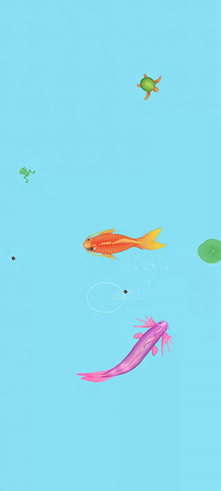 然而,只有当你合成锦鲤时,游戏才真正拉开帷幕。此刻,水池中的世界会变得极其危险,稍有不慎,撞上粉色电鳗,游戏便宣告结束,你只能从蝌蚪状态重新开始。又或许,被鲨鱼一个摆尾吓得变回原型之类的情况也会发生。