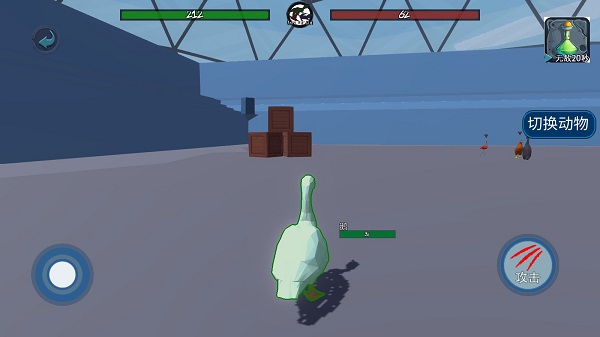 3、知晓上述内容后,紧接着点击“开始战斗”。此游戏的挑战模式采用闯关制,在游戏过程中,玩家能够借助左侧的虚拟摇杆实现移动操作,同时搭配攻击按钮对对方展开攻击。在此期间,玩家可自由切换所操控的动物。游戏规则设定为三局两胜。