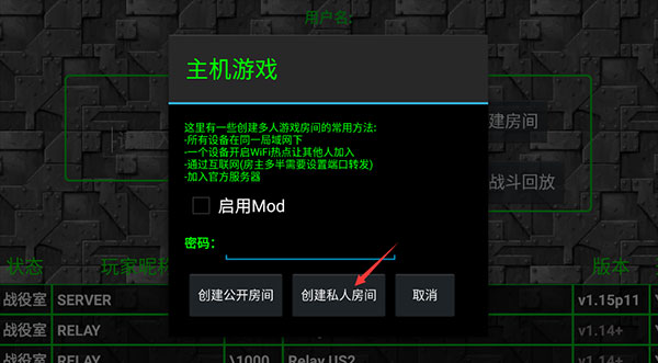 5、然后让你朋友从另一个手机输入ip进入到房间当中,便可以开始联机游戏了!