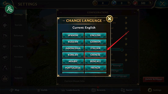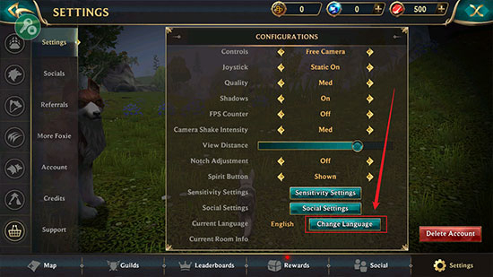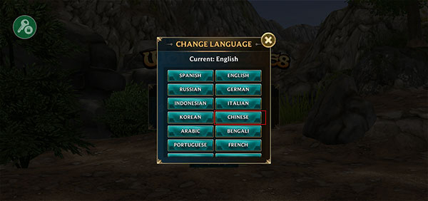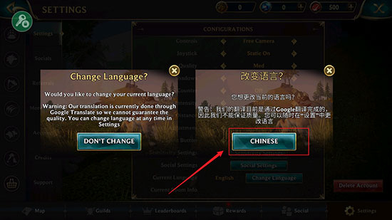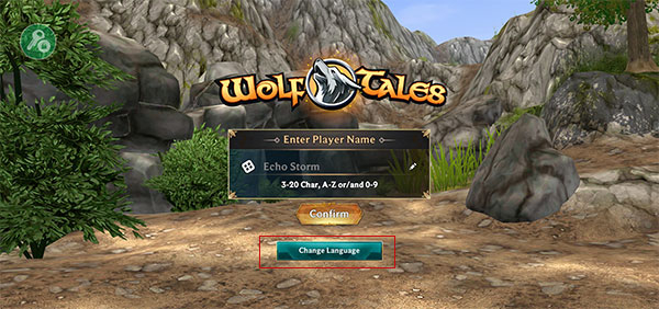 1、首先,狼传说家园与爱心更新到最新版后,默认语言是英文,我们可以将其设置为中文,点击【Change Language】。