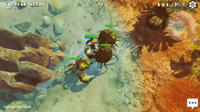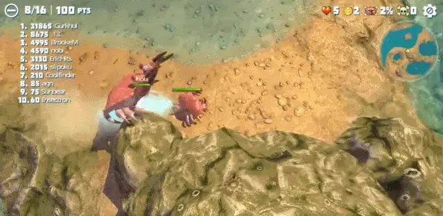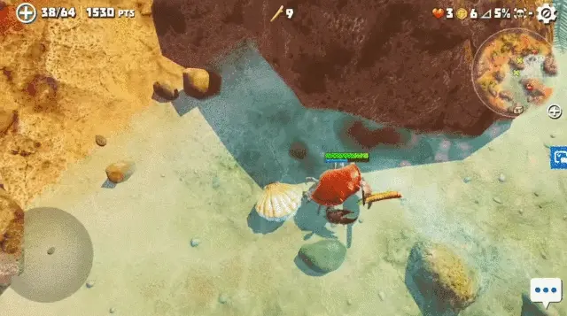 2、游戏的场景设定在一座广袤的海岛上,每一局大概会有65位玩家加入。每位玩家在游戏初始时,都只是一只普普通通的小螃蟹,而实现变强的主要途径便是进食。