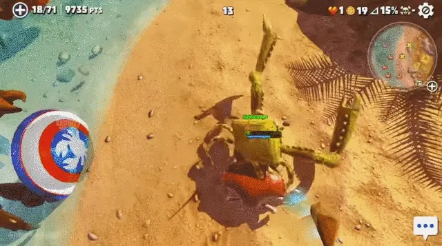 4、除了能够徒手“吃掉对手”,我们还能在海岛上寻觅掉落的装备或箱子。在这些箱子中能找到武器,借助武器可提升螃蟹的攻击力与防御力。